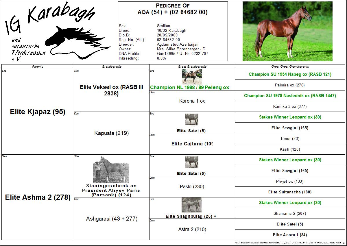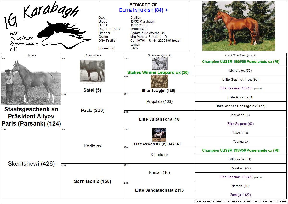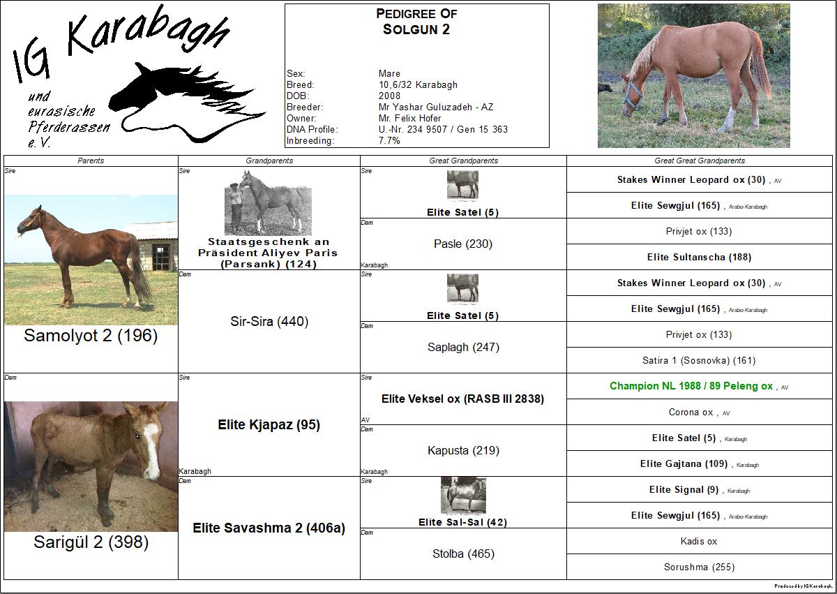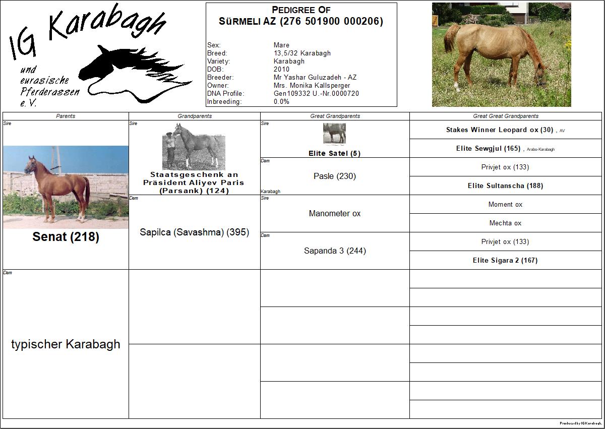 Als private Züchterin in Deutschland und Initiatorin der IG Karabagh möchte ich gerne zum Erhalt der originalen Karabaghpferde beitragen, soweit es in meiner Macht steht. Daher bemühe ich mich um die Zucht von Pferden mit größtmöglichem Anteil an altem, originalem Karabaghblut. Leider sind hier in Westeuropa die Möglichkeiten dazu sehr eingeschränkt, da eine Einfuhr von Pferden oder Gefriersperma aus Aserbaidschan wegen der aktuellen Gesetzeslage der EU (2014) nicht möglich ist und selbst in Aserbaidschan Pferde mit hohem Anteil an originalem Karabaghblut schon sehr selten sind.
