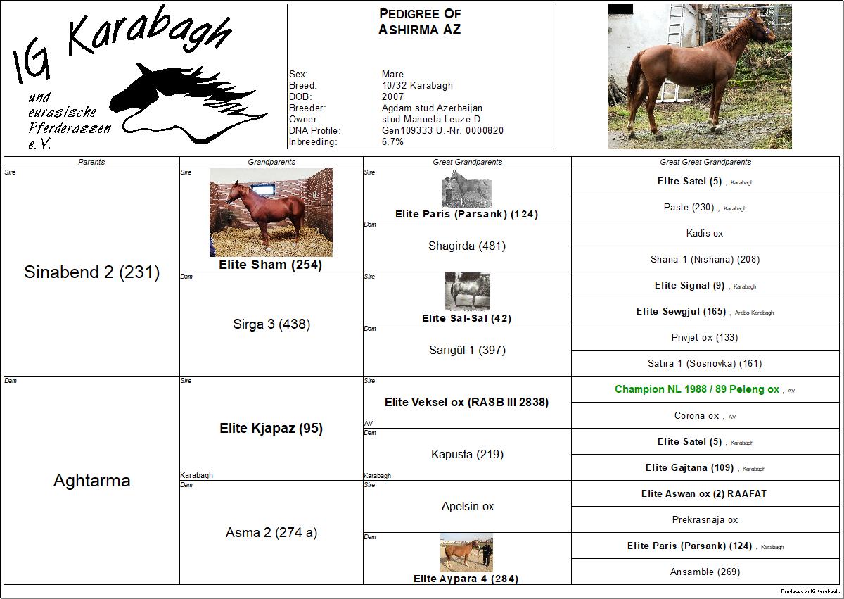 Die staatliche Pferdeorganisation ARAF in Aserbaidschan, die unser Zuchtproblem kannte, hat uns zu unserem 25jährigen Vereinsjubiläum im Juli 2019 eine erfreuliche Nachricht überbringen lassen. Wir erhielten als Geschenk drei Karabagh-Stuten aus Aserbaidschan, die im Dezember 2019 dann auch, nachdem sie am 1. 12. 2019 in Moskau auf der Pferdemesse "Equiros" vorgestellt wurden, auch in Deutschland ankamen. Zusätzlich zu den Stuten hatte ich noch eine vierte Stute ausgesucht und gekauft, die im gleichen Transport mit den anderen Stuten hier eintraf. Diese Stuten sind hier als "Original Karabagh" aufgelistet.