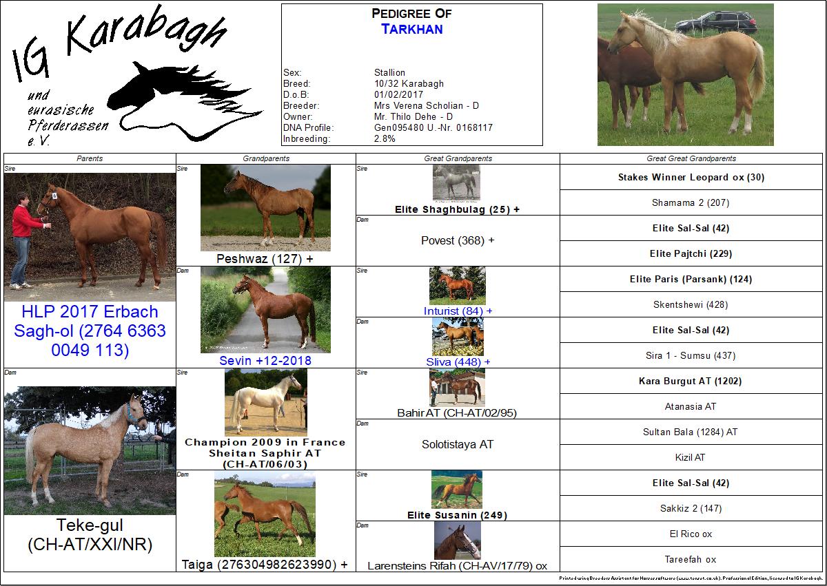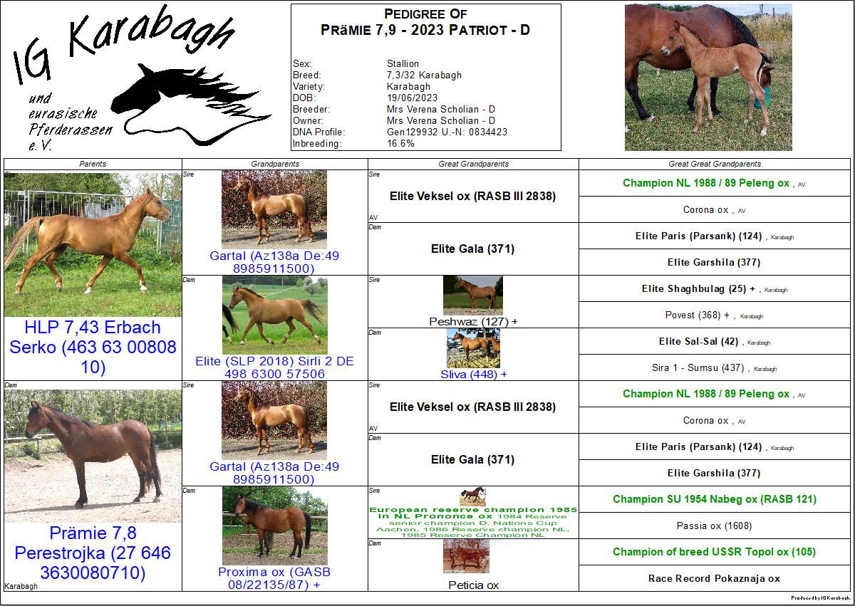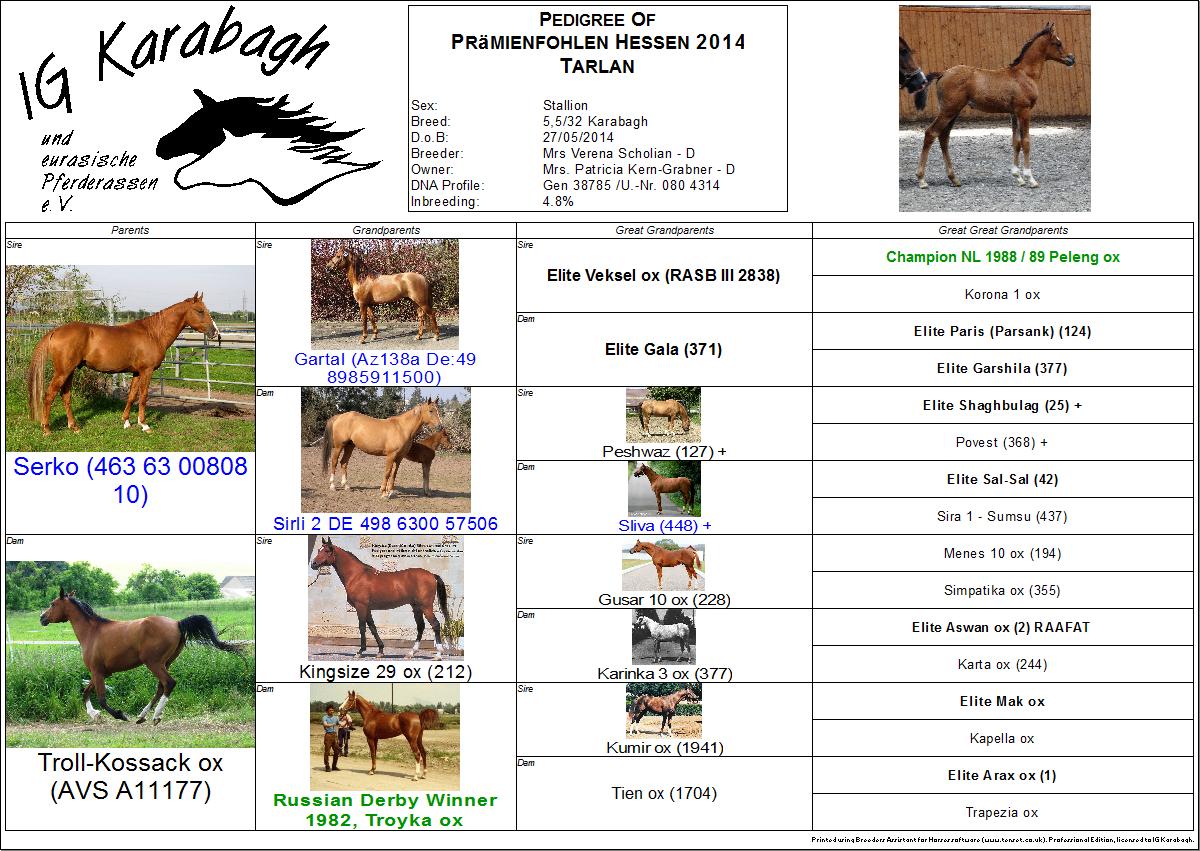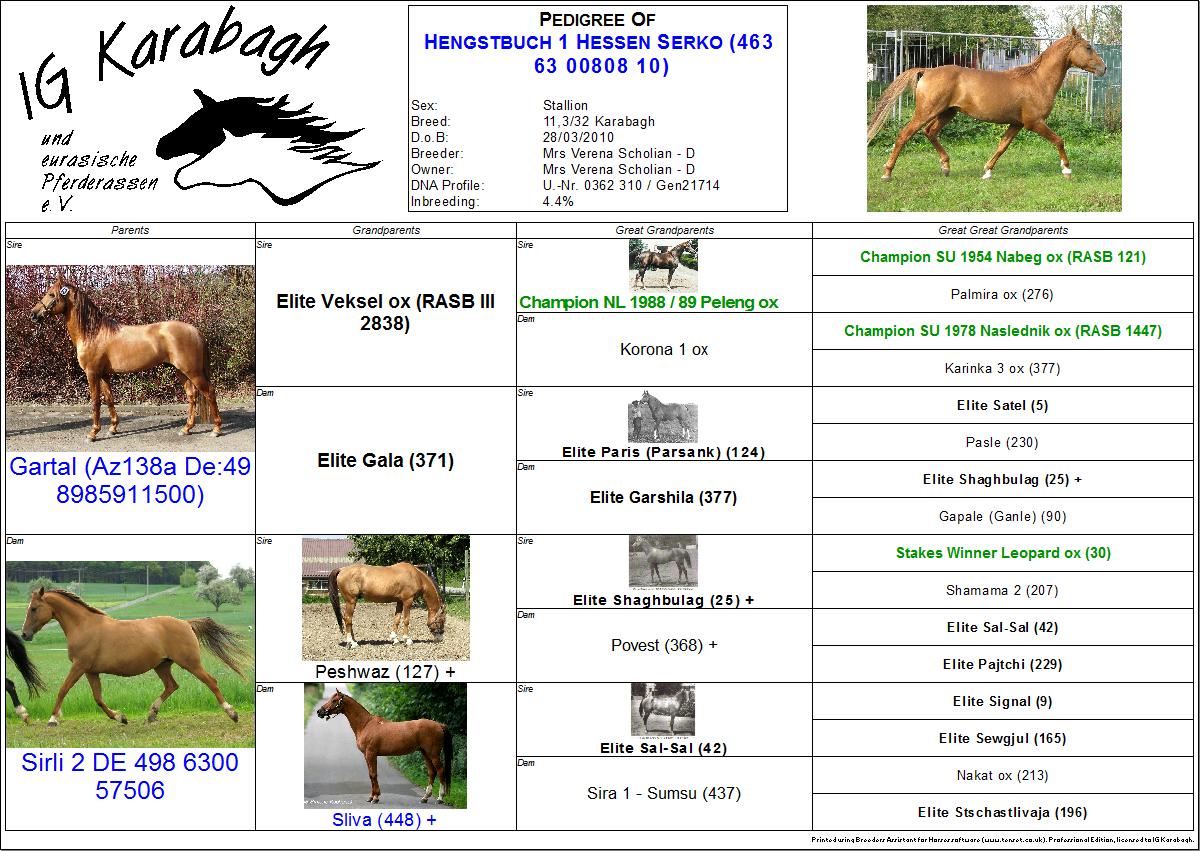 Serko ist der Enkel aller vier im Gestüt Agdam in Aserbaidschan geborenen Karabaghpferden. Seine Kinder sind – sofern sie vorgestellt wurden – selbst prämiert Serko deckt im Natursprung in Daxstein, auch Gefriersperma ist auf Wunsch zu haben. Weitere Informationen ...